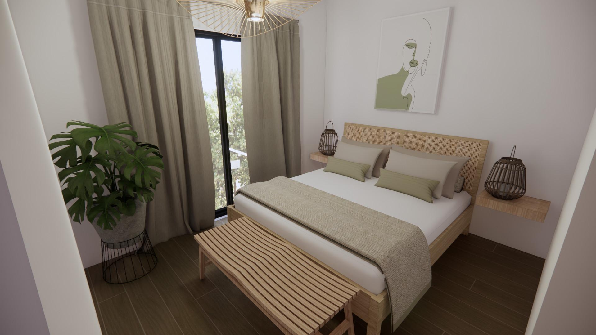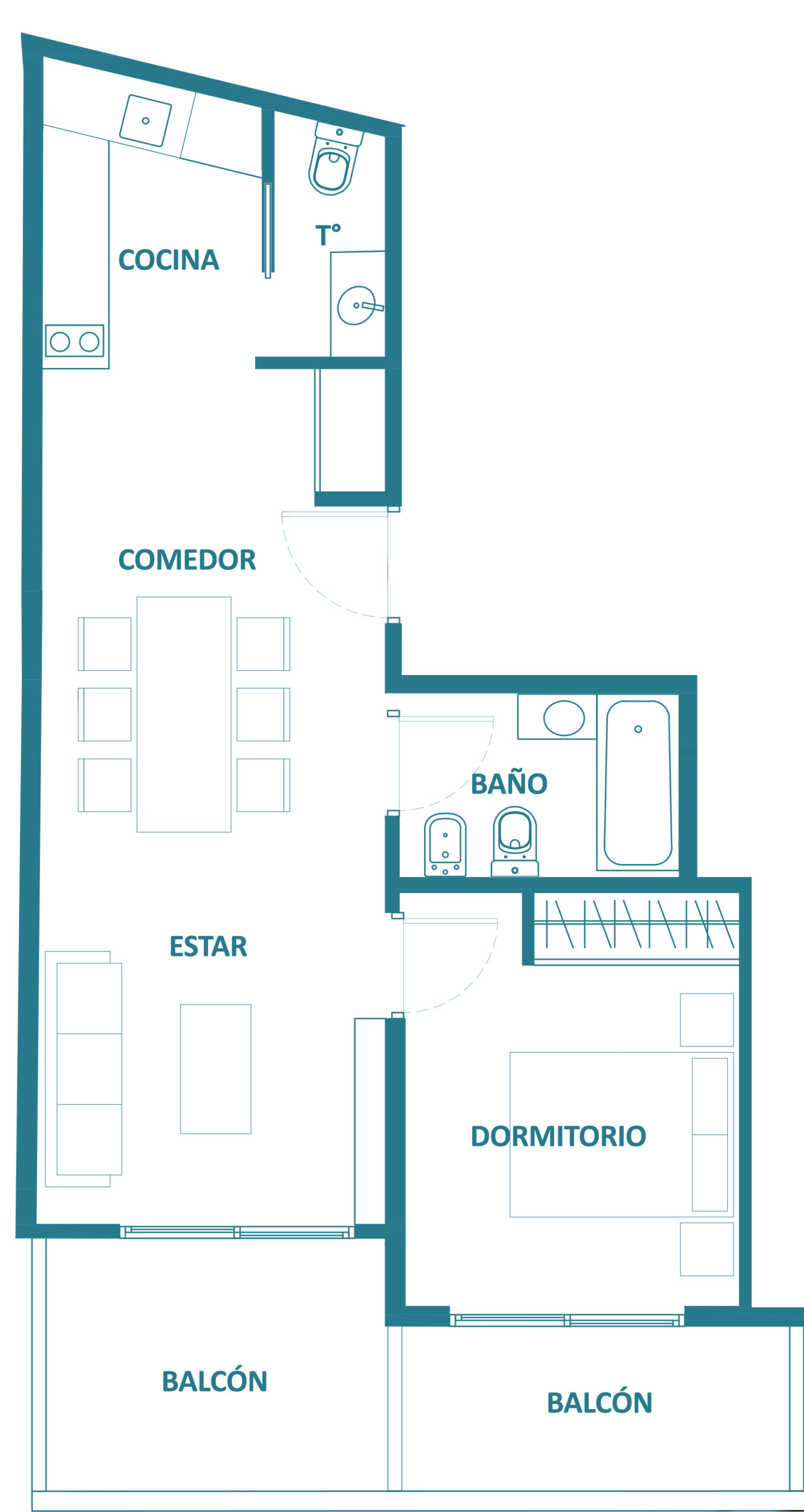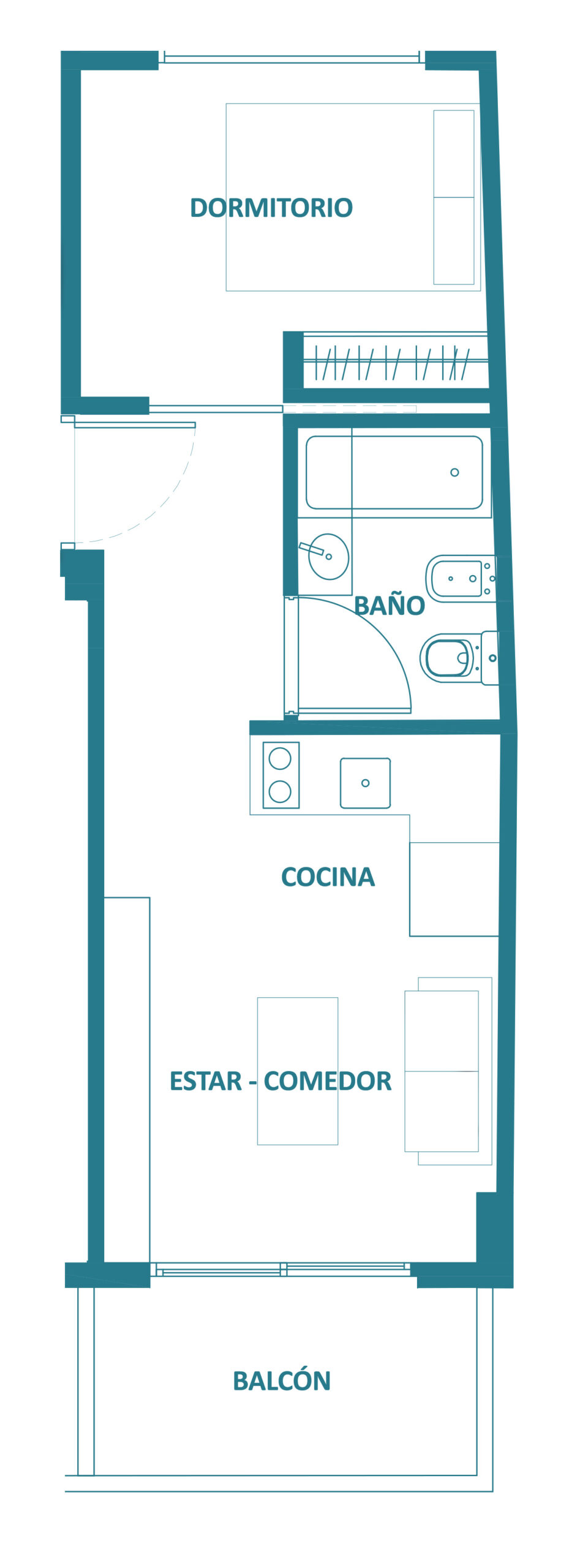 Dispone de un espacioso estar – comedor con balcón con una moderna cocina integrada. Dormitorio al fondo.